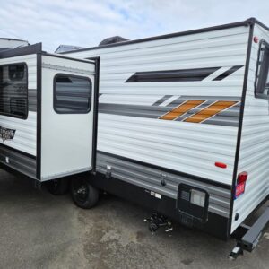 Introducing the exceptional Wildwood X-Lite Northwest 240BHXL from Forest River, an ideal choice for families seeking adventure in the great outdoors. With a length of 28.87 feet, this used travel trailer is designed to provide ample space and comfort for those unforgettable RVing experiences. Whether you are planning a weekend getaway or an extended vacation, this model comfortably accommodates up to 8 people, making it perfect for family trips or outings with friends. This RV comes equipped with one slide-out that expands the living area, ensuring you have the necessary room to relax and enjoy your time away from home. The bunkhouse adds versatility, offering extra sleeping space for children or guests. It features convenient front and rear manual leveling jacks that facilitate easy setup, allowing you to focus more on enjoying your adventure. The awning provides an inviting outdoor space to unwind under, enhancing your camping experience. With a dry weight of 5343 pounds and a hitch weight of 570 pounds, this travel trailer is manageable for your towing vehicle. Its overall condition is used, yet it remains a dependable companion for your outdoor excursions. Stock#: E5743A, VIN: 4X4TWDZ22NT145080.