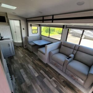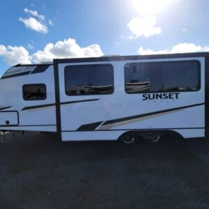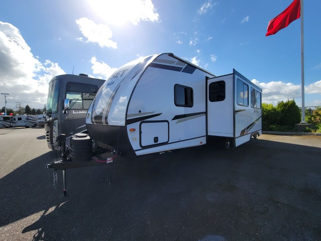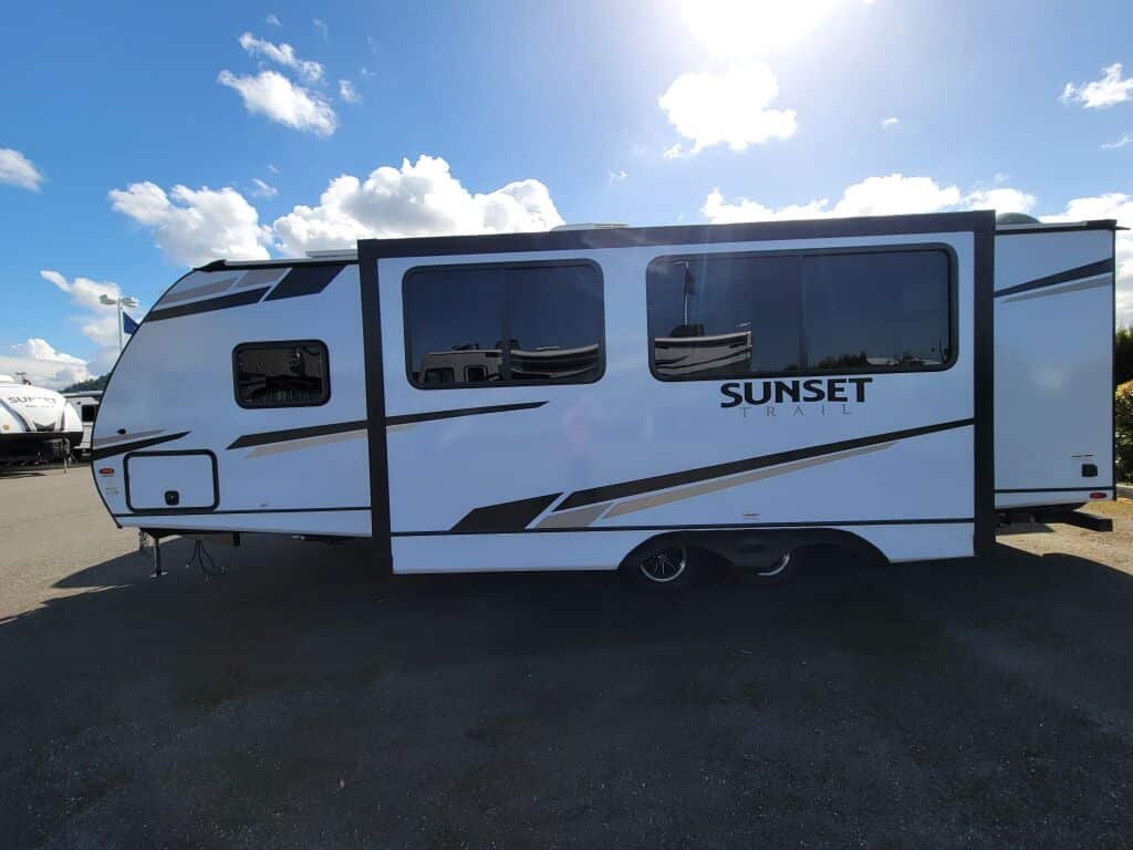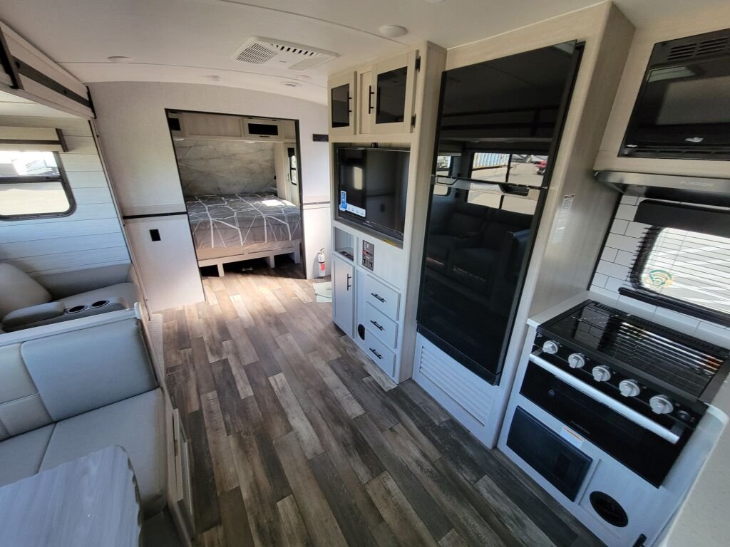 Introducing the impressive 2024 Crossroads Sunset Trail Super Lite SS253RB, a perfect choice for those seeking adventure on the open road. This new RV measures an ample 29.86 feet in length, making it spacious enough for families or groups of up to six people, ensuring everyone can enjoy the comforts of home while traveling. The RV boasts one slide-out that expands the living area, providing additional space that enhances your overall experience. Designed for modern RV enthusiasts, the Sunset Trail features a dry weight of 5,738 pounds and a gross vehicle weight rating (GVWR) of 7,550 pounds, making it easy to handle during your travels. The lightweight design and manageable hitch weight of 666 pounds ensure that towing is a breeze. For comfort and convenience, this model comes equipped with front and rear power leveling jacks, allowing you to set up quickly and easily on any terrain. You will find amenities that enhance both comfort and functionality, making this model truly unique and convenient for RV living. Stock#: M3445, VIN: 4YDTSSM25R6350889.