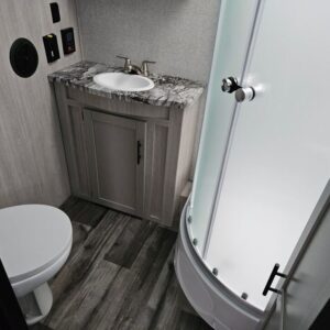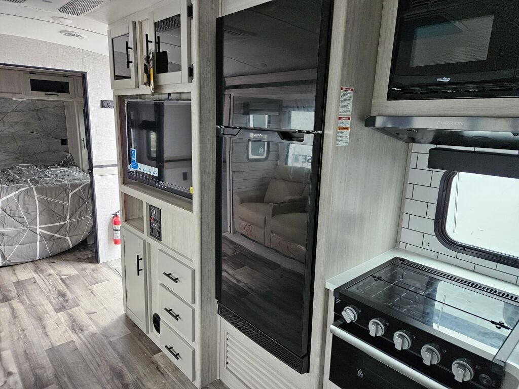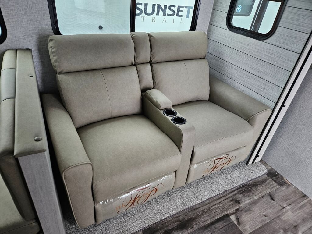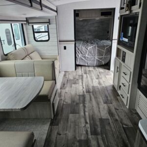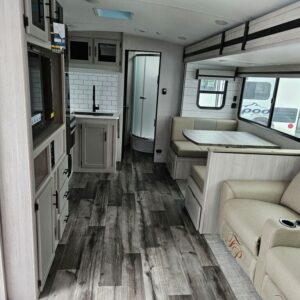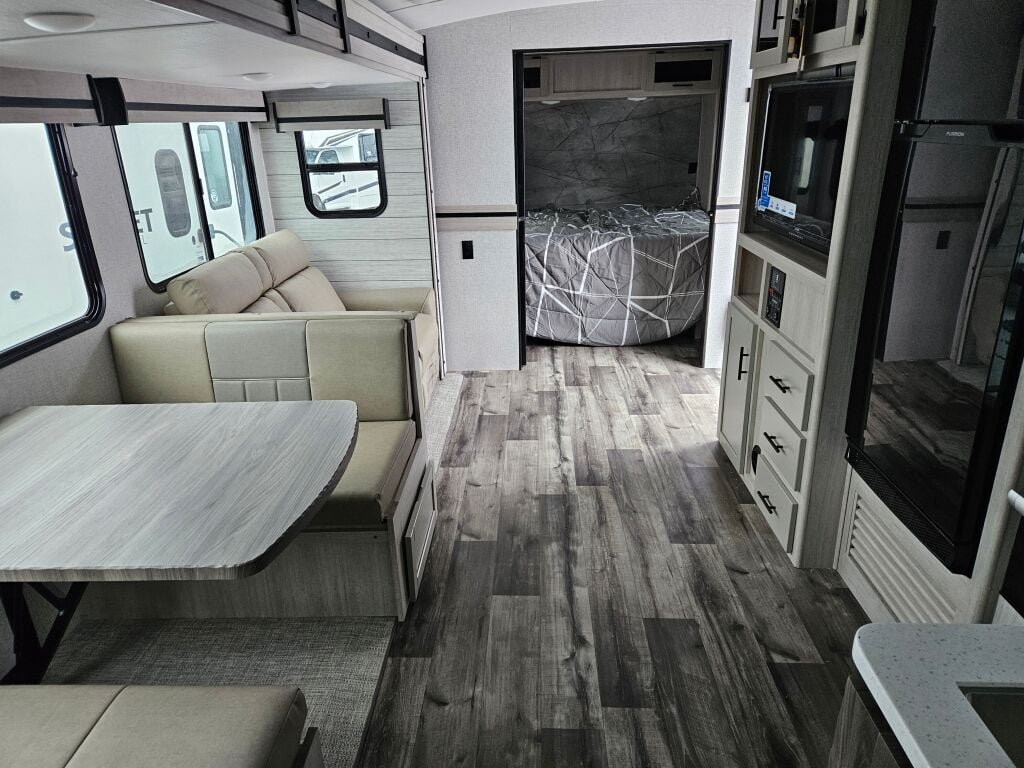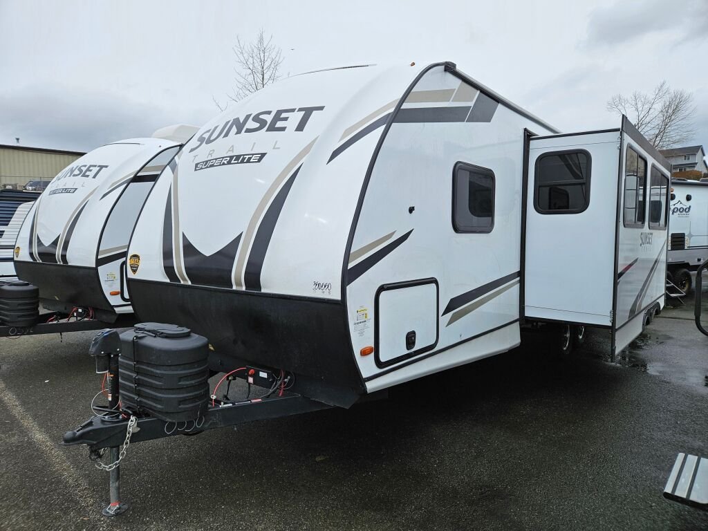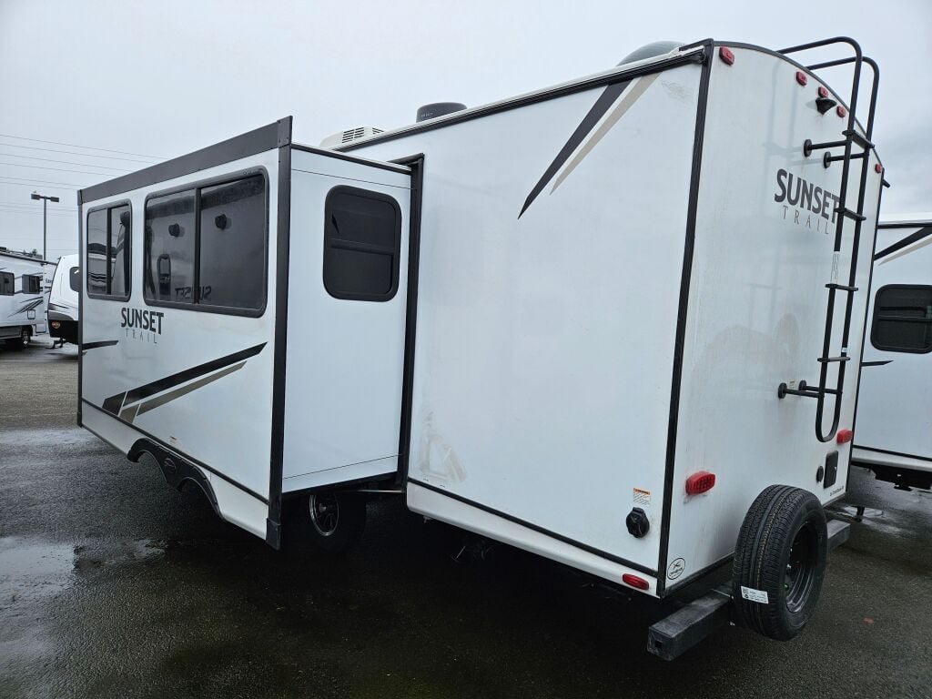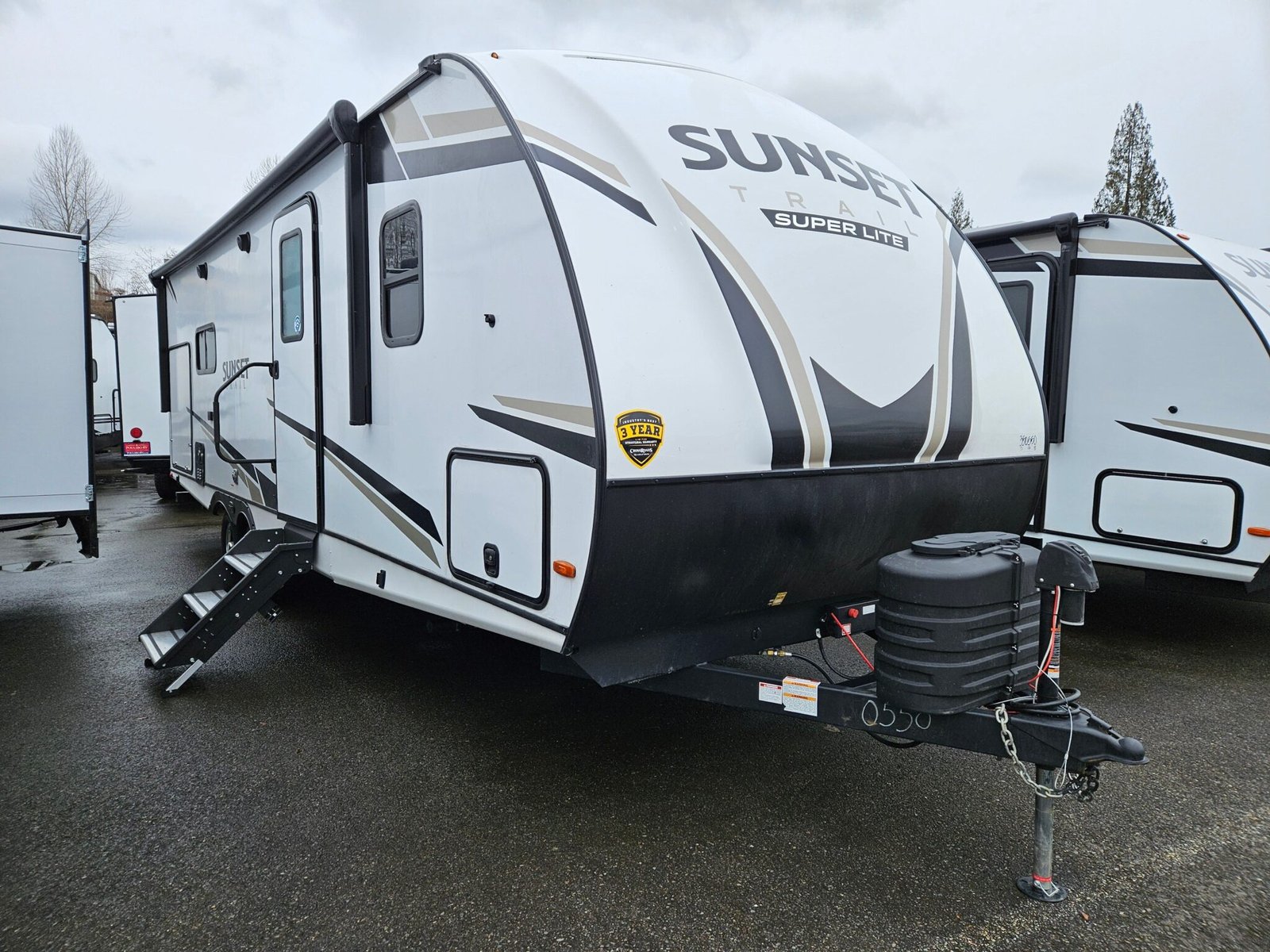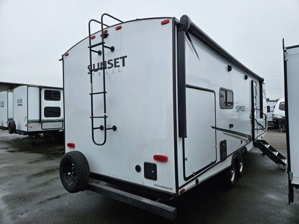 Introducing the 2024 Crossroads Sunset Trail Super Lite SS253RB, a remarkable travel trailer designed for those who appreciate adventure while enjoying the comforts of home. With a length of 29.86 feet, this RV is compact yet spacious enough to comfortably accommodate six individuals, making it ideal for family trips or gatherings with friends. The new condition of this model assures you that it is ready to hit the road without worry. It features one slide-out that extends the living area, allowing for a generous and flexible space perfect for relaxing or entertaining. Equipped with front and rear power leveling jacks, setting up your home away from home has never been easier. The RV weighs a dry weight of 5,738 pounds and has a gross vehicle weight rating (GVWR) of 7,550 pounds, coupled with a hitch weight of 666 pounds, ensuring that it is easy to tow. The one awning adds outdoor living space, making it a perfect addition for enjoying sunny days or shady retreats. This model does not have a bunkhouse, thus providing a more open atmosphere for its guests to socialize and enjoy. Stock#: E5724, VIN: 4YDTSSM20RS350550.