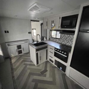 Introducing the 2024 Crossroads Zinger Lite ZR260BH, an exceptional travel trailer designed for unforgettable RV adventures. With a generous length of 30.84 feet, this new model offers an impressive dry weight of 5,950 pounds and a GVWR of 7,600 pounds, making it perfect for families seeking comfort and flexibility on the road. Its spacious layout accommodates up to 10 people, featuring a designated bunkhouse that enhances sleeping options for kids or guests. The thoughtfully designed living area ensures ample space for relaxation and entertainment, while the slide-out expands the interior further, creating a welcoming atmosphere. Equipped with both front and rear power leveling jacks, setting up camp is a breeze, allowing you to focus more on creating memories outdoors. The Zinger Lite stands out with its single awning that provides shade for alfresco gatherings, along with its various convenience features that elevate your camping experience. With a hitch weight of 780 pounds, it is manageable and ideal for families who enjoy spontaneous trips. Stock#: K5955, VIN: 4YDTZRM21RS370701.