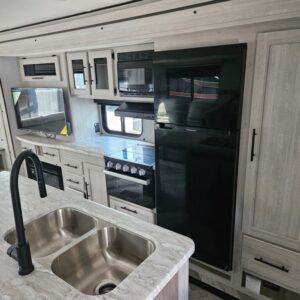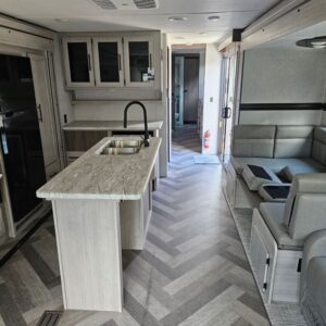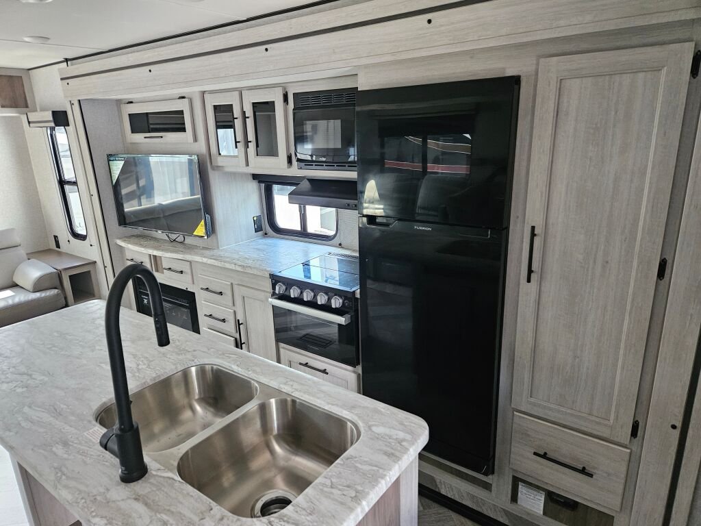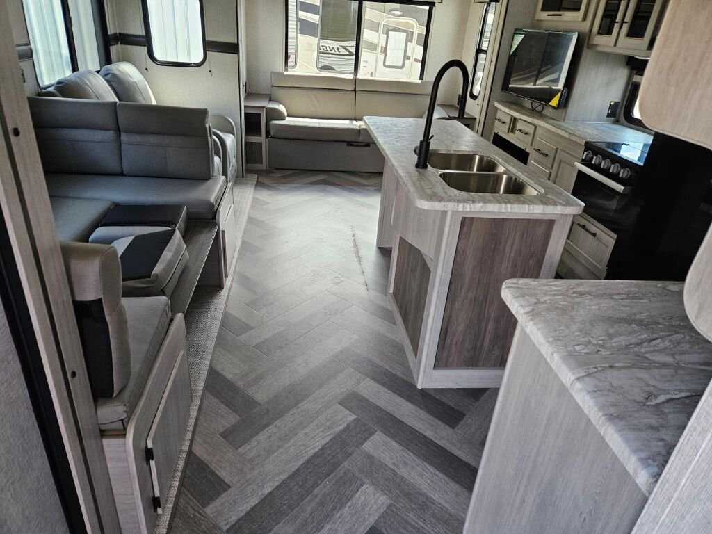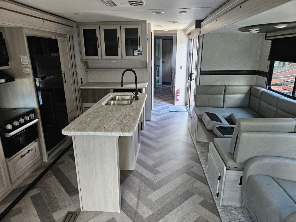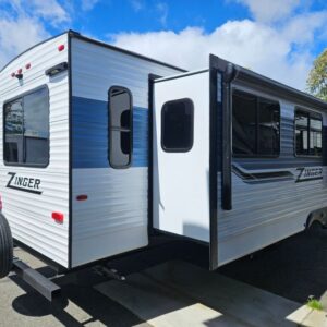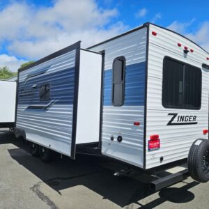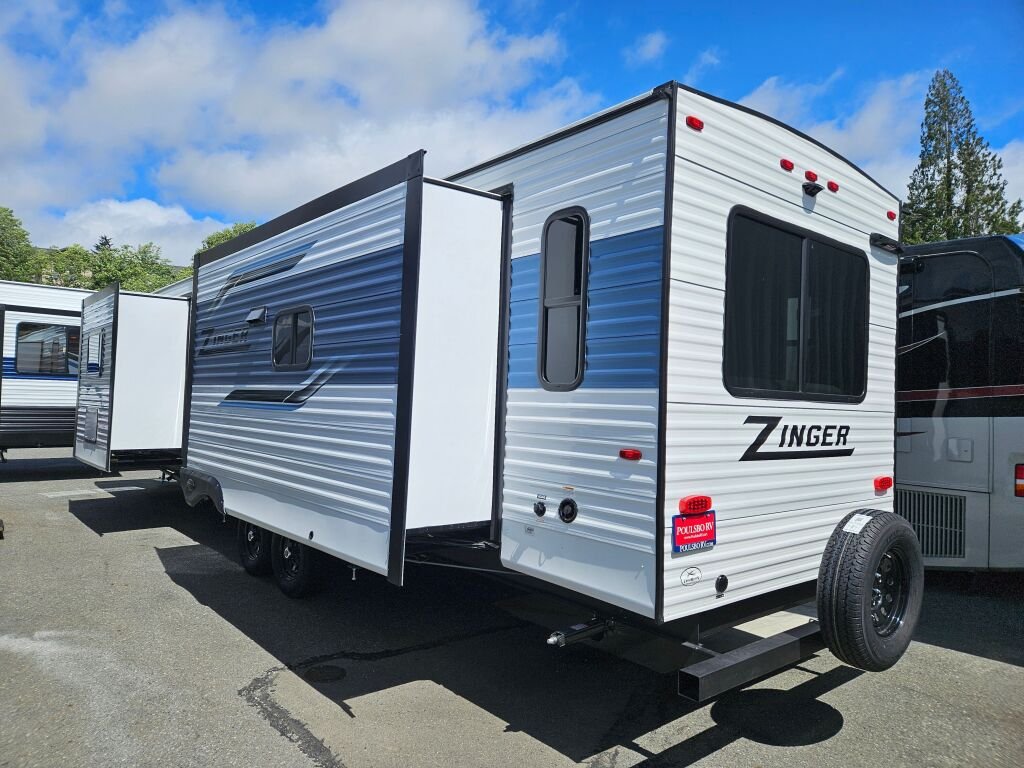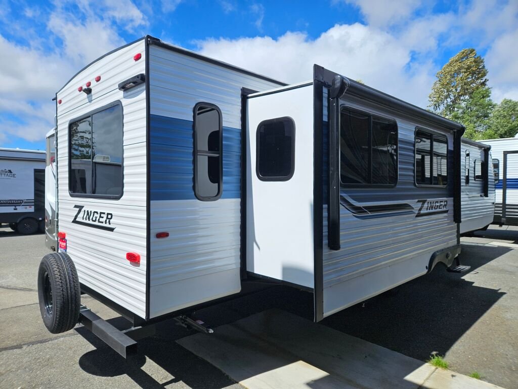Introducing the incredible 2024 Crossroads Zinger ZR380FB, a remarkable RV designed for your unforgettable adventures on the road. With an impressive length of 42.32 feet, this spacious travel trailer is perfect for those who seek comfort and style while exploring the great outdoors. This model, a brand new addition to the Zinger family, features a dry weight of 10,182 pounds and a gross vehicle weight rating (GVWR) of 13,490 pounds, making it a robust choice for your travel needs. The ZR380FB accommodates up to six people comfortably, ensuring everyone enjoys a cozy night rest in the well-thought-out living area and sleeping quarters. A distinctive feature of this RV is its three slide-outs, which significantly enhance the interior space, creating a home-like atmosphere whether you are parked at your favorite campsite or exploring new locations. You will also appreciate the practicality of the front and rear power leveling jacks that make setup a breeze. With one awning providing shade and comfort outside, you can enjoy the fresh air without compromising on convenience. Stock#: E5776, VIN: 4YDTZRU29RS370882.