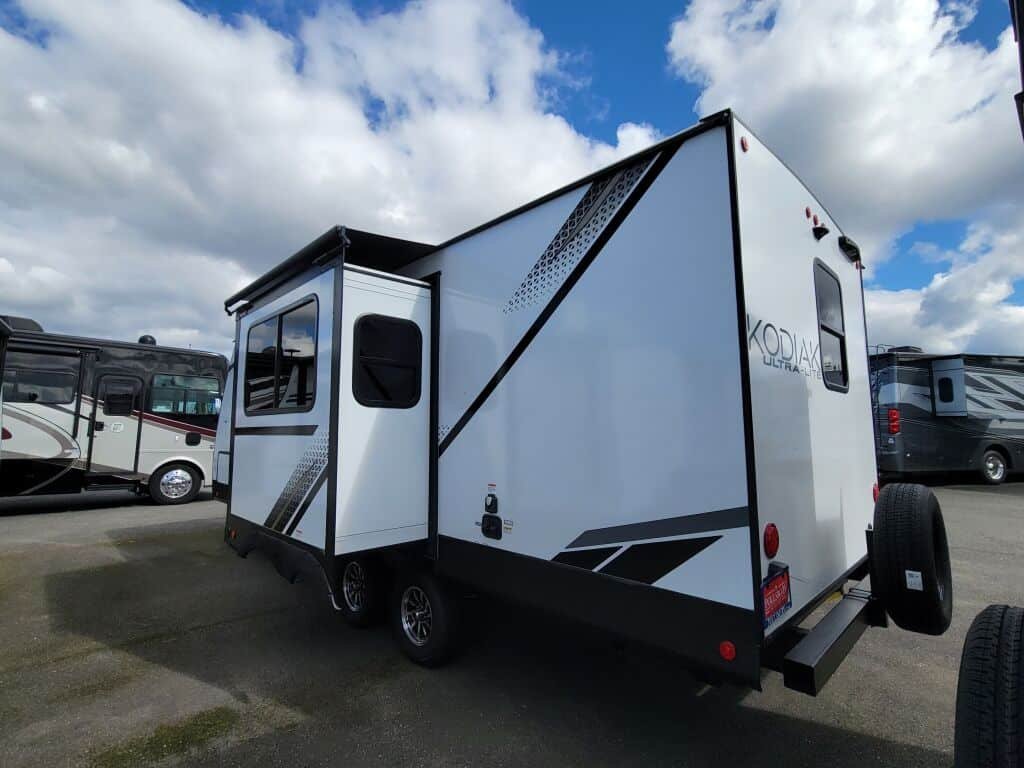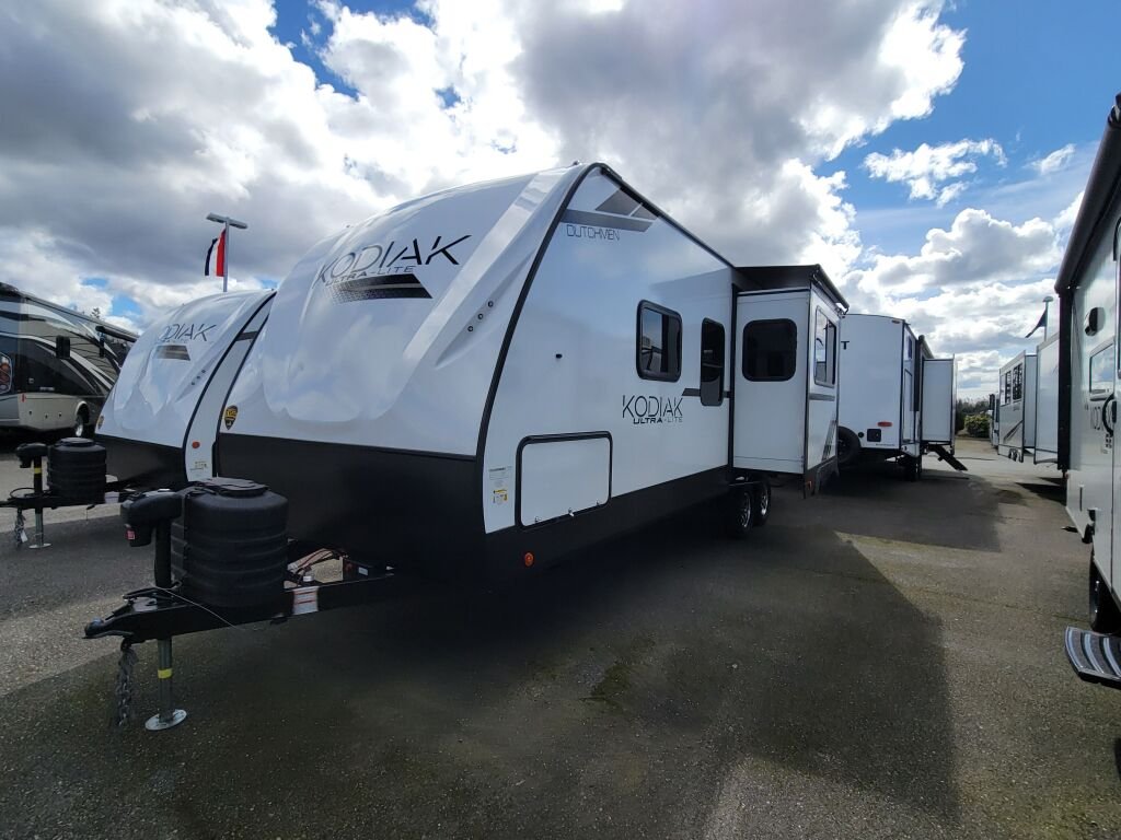 Introducing the 2024 Dutchmen Kodiak Ultra-Lite 242RBSL, a beautifully crafted travel trailer designed for those who love the open road and the adventures that come with it. This stunning RV measures an impressive 28.87 feet in length, providing a spacious interior that is ideal for family trips or intimate escapes with friends. With the capacity to comfortably sleep up to four people, everyone will enjoy cozy nights after a day filled with exploration. The layout of the Kodiak Ultra-Lite features one well-designed slide-out, maximizing living space and allowing for a bright, open feel inside. What sets this model apart is its attention to convenience; outfitted with front and rear power leveling jacks, setting up camp becomes a hassle-free experience. The trailer boasts a dry weight of 5,137 pounds, paired with a hitch weight of 568 pounds, ensuring it is manageable on the road yet robust enough to hold your essentials. When the sun is shining, the single awning provides the perfect spot for relaxation outdoors. Easily navigate the inside amenities, creating a home-like atmosphere wherever your travels take you. Stock#: M3411, VIN: 4YDTKDL20RJ970625.