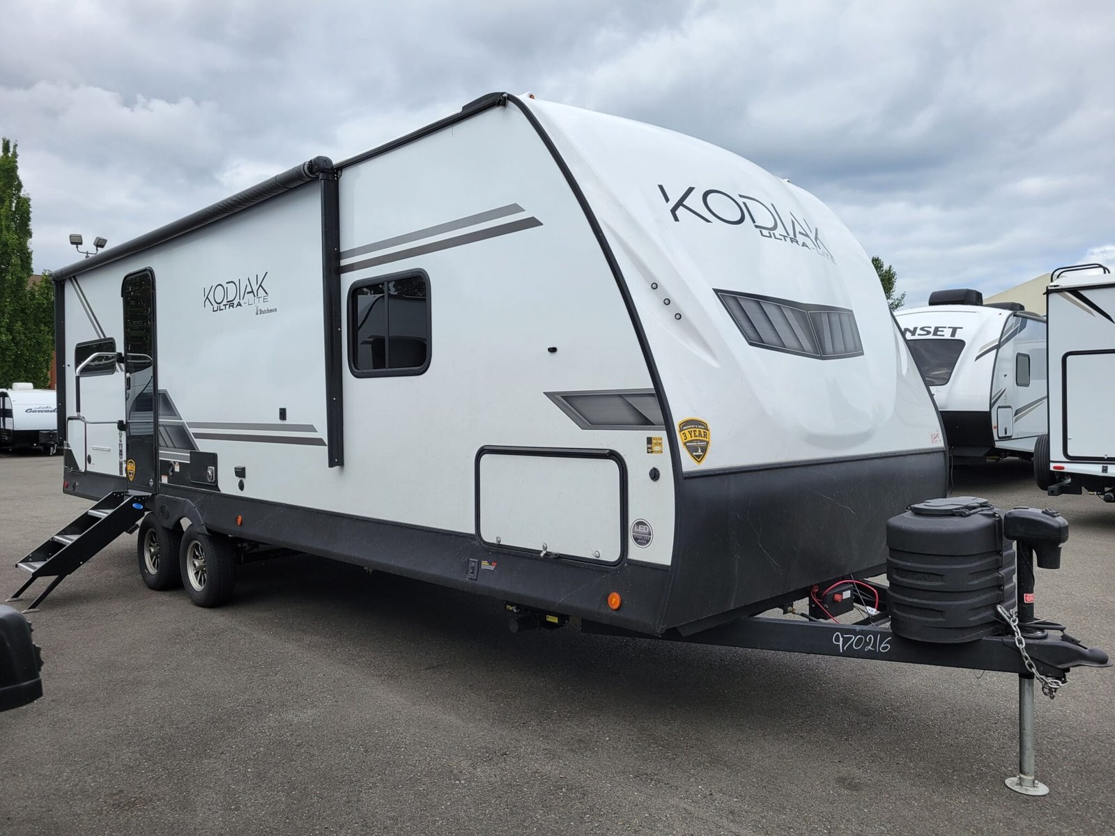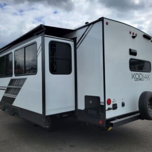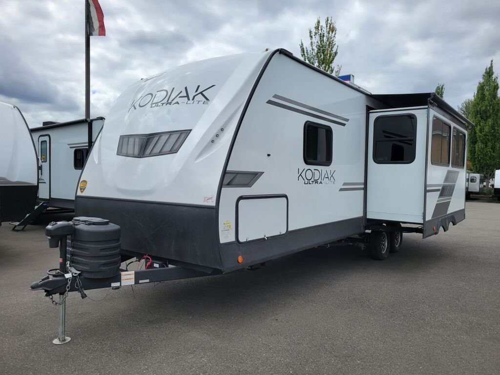 Introducing the 2024 Dutchmen Kodiak Ultra-Lite 257RKSL, a stylish and functional RV designed for your adventures on the road. With an overall length of 29.86 feet, this new model is perfect for those seeking comfort and convenience during their travels. Weighing in at a dry weight of 5562 pounds and a hitch weight of 557, it is manageable for various towing vehicles. The great layout comfortably accommodates up to four people, making it an ideal choice for family getaways or trips with friends. One of the standout features of the Kodiak Ultra-Lite is its spacious living area, complemented by a slide-out for added roominess, ensuring everyone has plenty of space to relax and socialize. This model comes with one awning, providing shade and comfort when parked. Designed with convenience in mind, the levelers are equipped with both front and rear power, allowing for easy setup at your chosen campsite. Stock#: F1213, VIN: 4YDTKDM27RJ970216.