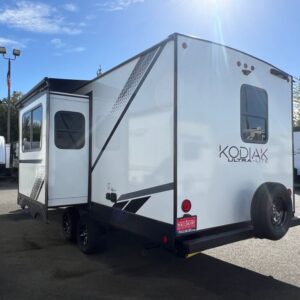 Introducing the remarkable 2025 Dutchmen Kodiak Ultra-Lite 242RBSL, a well-crafted travel trailer designed for adventurers and families alike. With an overall length of 28.87 feet, this new RV is perfect for those who desire both comfort and convenience while exploring the great outdoors. It provides ample living space to accommodate up to four individuals, making it ideal for weekend getaways or extended trips. One of the standout features of this model is its slide-out, which enhances the living area by providing additional room for relaxation and entertainment. The Kodiak Ultra-Lite is equipped with one awning, offering shelter while enjoying the fresh air outside. Additionally, it has both front and rear power leveling jacks, making setup at campgrounds effortless. Weighing in at a dry weight of 5,137 pounds and a hitch weight of 568 pounds, this RV is manageable for towing, allowing you to easily navigate your journey. The durable construction and thoughtful layout make it a fantastic choice for memorable RVing experiences. Stock#: S672, VIN: 4YDTKDL29SJ970189
