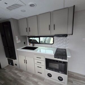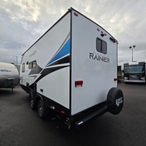 Introducing the stunning 2025 Forest River Rainier 19RB, a brilliantly designed travel trailer that perfectly caters to couples and adventurous companions. With a generous length of 23.62 feet, this RV strikes an ideal balance between size and comfort, making it suitable for both weekend trips and extended getaways. This brand new model is built to enhance your RVing experience without compromises. Equipped with a front and rear power leveling jack system, setting up your campsite has never been easier. The Rainier offers a cozy living area that optimizes space, providing ample room for relaxation after a day of exploration. With a sleeping capacity for two, it is perfect for intimate escapes. Although the Rainier does not feature slide-outs, its well-planned layout maximizes functionality. Loaded with essential features, this model comes with a single awning, allowing for shade and comfort during your outdoor activities. With a dry weight of 4873 lbs and a GVWR of 7680 lbs, it strikes a balance of lightweight towing and durability. The journey is made smooth with a hitch weight of 680 lbs, ensuring stability on the road. Stock#: RNK131, VIN: 4X4TRNU29ST154052.