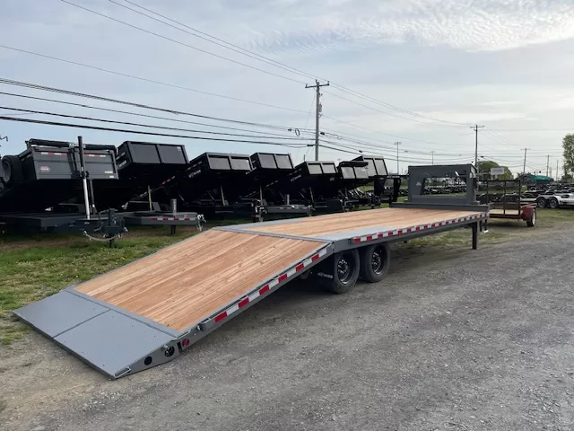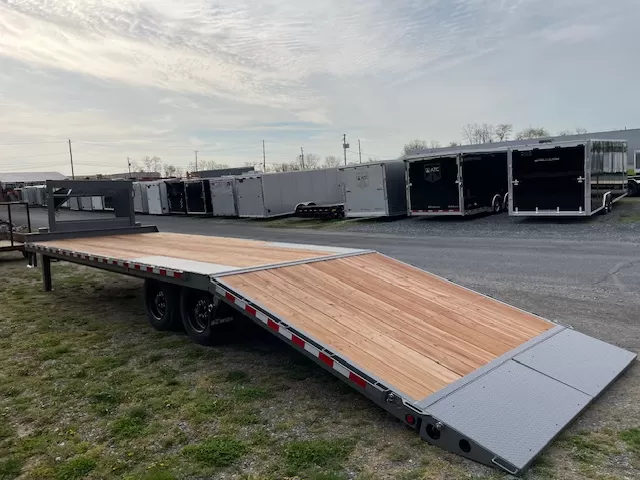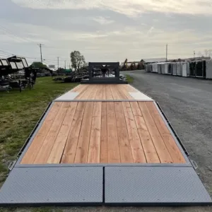 - 20′ Flat Deck Plus 8′ Hydraulic Beavertail with 2′ Diamond Plate Transition Flip Out
