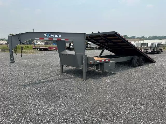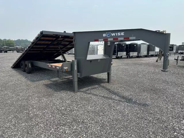 BWise 8 x 28 Gooseneck Deckover Equipment Trailer – Hydraulic Beavertail